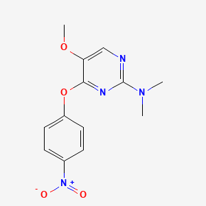 5-methoxy-N,N-dimethyl-4-(4-nitrophenoxy)pyrimidin-2-amine is a novel research chemical with potential implications in various fields of research and industry. Its molecular formula is C13H14N4O4, and it has a molecular weight of 290.27 g/mol.