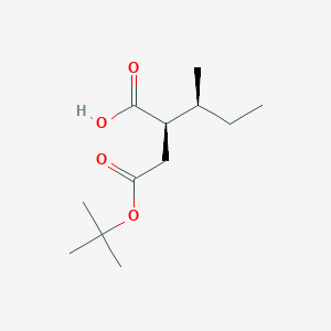 The synthesis of (2R,3S)-3-methyl-2-[2-[(2-methylpropan-2-yl)oxy]-2-oxoethyl]pentanoic acid typically involves multi-step organic reactions. One common method includes the use of starting materials such as 3-methyl-2-pentanol and 2-methylpropan-2-ol. The reaction conditions often require the presence of a strong acid or base to facilitate the formation of the desired product. The reaction may also involve the use of protective groups to prevent unwanted side reactions.