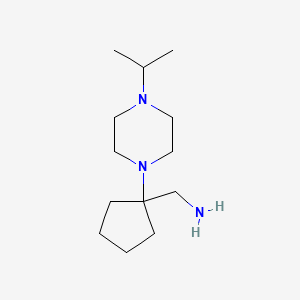 The synthesis of (1-[4-(Propan-2-YL)piperazin-1-YL]cyclopentyl)methanamine typically involves the reaction of cyclopentylmethanamine with 1-(4-isopropylpiperazin-1-yl) derivatives under controlled conditions . The reaction is usually carried out in the presence of a suitable solvent and a catalyst to facilitate the formation of the desired product. The reaction conditions, such as temperature and pressure, are optimized to achieve high yields and purity.