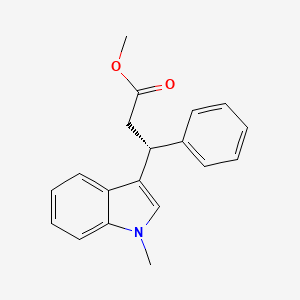 The mechanism of action of ®-Methyl 3-(1-methyl-1H-indol-3-yl)-3-phenylpropanoate involves its interaction with various molecular targets. The indole ring can interact with biological receptors, enzymes, and other proteins, modulating their activity. The phenyl group and ester functionality contribute to the compound’s binding affinity and specificity. Pathways involved may include signal transduction, enzyme inhibition, and receptor modulation.