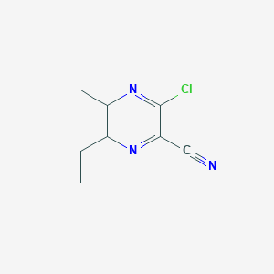 The academic interest in a specifically substituted pyrazine such as this compound stems from several key considerations within the broader context of pyrazine chemistry. The presence of a chlorine atom, an ethyl group, a methyl group, and a carbonitrile group on the pyrazine core suggests a molecule designed for specific purposes, likely as a versatile chemical intermediate.