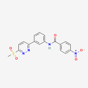 InChI=1S/C18H14N4O5S/c1-28(26,27)17-10-9-16(20-21-17)13-3-2-4-14(11-13)19-18(23)12-5-7-15(8-6-12)22(24)25/h2-11H,1H3,(H,19,23) | |