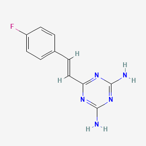 ¹H NMR: The proton NMR spectrum is anticipated to show distinct signals for the amino, vinyl, and aromatic protons. The two primary amino (-NH₂) groups on the triazine ring would likely appear as a broad singlet in the range of 6.5-7.0 ppm, with the exact shift depending on the solvent and concentration. The vinyl protons of the styryl group are expected to appear as two distinct doublets in the olefinic region (typically 6.5-8.0 ppm), showing a large coupling constant (J > 15 Hz) characteristic of a trans configuration. The aromatic protons of the 4-fluorophenyl ring would exhibit a characteristic AA'BB' system, appearing as two sets of multiplets or doublets of doublets, integrating to two protons each.