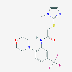 2-(1-methylimidazol-2-yl)sulfanyl-N-[2-morpholin-4-yl-5-(trifluoromethyl)phenyl]acetamide is unique due to its combination of an imidazole ring, a morpholine ring, and a trifluoromethyl group. This combination imparts distinct chemical properties, such as enhanced stability, reactivity, and potential biological activity, making it a valuable compound for various applications.