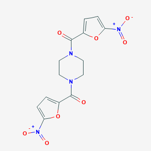 In chemistry, 1,4-BIS(5-NITROFURAN-2-CARBONYL)PIPERAZINE is used as a building block for the synthesis of more complex molecules. Its unique structure allows for the exploration of various chemical transformations and the development of new synthetic methodologies.