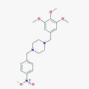 1-[(4-Nitrophenyl)methyl]-4-[(3,4,5-trimethoxyphenyl)methyl]piperazine is a synthetic organic compound that belongs to the class of piperazine derivatives This compound is characterized by the presence of a piperazine ring substituted with a 4-nitrobenzyl group and a 3,4,5-trimethoxybenzyl group