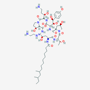 (10R,12S)-N-[(3S,6S,9S,11R,15S,18S,20R,21S,24S,25S)-21-(2-aminoethylamino)-3-[(1R)-3-amino-1-hydroxypropyl]-6-[(1S,2S)-1,2-dihydroxy-2-(4-hydroxyphenyl)ethyl]-11,20,25-trihydroxy-15-[(1R)-1-hydroxyethyl]-2,5,8,14,17,23-hexaoxo-1,4,7,13,16,22-hexazatricyclo[22.3.0.09,13]heptacosan-18-yl]-10,12-dimethyltetradecanamide |