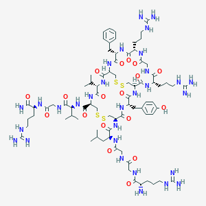(1R,4S,7R,12R,15S,18R,21S,24S,30S)-N-[(2S)-1-[[2-[[(2S)-1-amino-5-carbamimidamido-1-oxopentan-2-yl]amino]-2-oxoethyl]amino]-3-methyl-1-oxobutan-2-yl]-7-[[(2S)-2-[[2-[[2-[[(2S)-2-amino-5-carbamimidamidopentanoyl]amino]acetyl]amino]acetyl]amino]-4-methylpentanoyl]amino]-21-benzyl-24,30-bis(3-carbamimidamidopropyl)-4-[(4-hydroxyphenyl)methyl]-3,6,14,17,20,23,26,29,32-nonaoxo-15-propan-2-yl-9,10,34,35-tetrathia-2,5,13,16,19,22,25,28,31-nonazabicyclo[16.14.4]hexatriacontane-12-carboxamide |