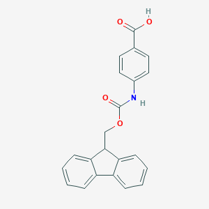 The synthesis of this compound is a multi-step process that begins with the starting material, 4-aminobenzoic acid. The key transformation is the protection of the amino group with the fluorenylmethoxycarbonyl (Fmoc) group. This is typically achieved by reacting 4-aminobenzoic acid with Fmoc-chloride or Fmoc-succinimidyl carbonate in the presence of a base. The reaction conditions are carefully controlled to ensure selective N-acylation without significant side reactions.