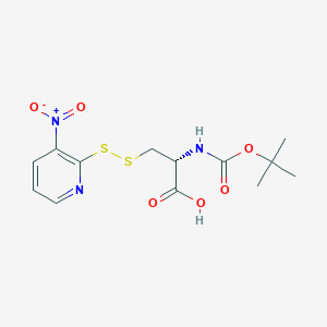 N-α-tert-Butoxycarbonyl-S-(3-nitro-2-pyridylsulfenyl)-L-cysteine, commonly abbreviated as Boc-Cys(Npys)-OH, is a specialized amino acid derivative crucial for the synthesis of complex peptides and bioconjugates. Its unique chemical features, particularly the Npys (3-nitro-2-pyridylsulfenyl) protecting group on the cysteine thiol, enable the regioselective formation of disulfide bonds, a critical structural motif in many biologically active proteins and peptides. This technical guide provides a comprehensive overview of the physical and chemical properties of this compound, detailed experimental protocols for its use, and its applications in drug development, particularly in the construction of peptide-drug conjugates.