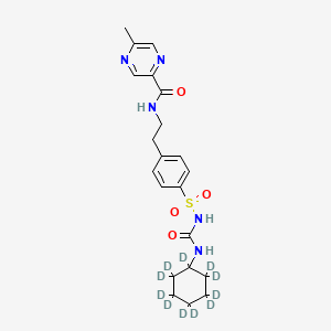 InChI=1S/C21H27N5O4S/c1-15-13-24-19(14-23-15)20(27)22-12-11-16-7-9-18(10-8-16)31(29,30)26-21(28)25-17-5-3-2-4-6-17/h7-10,13-14,17H,2-6,11-12H2,1H3,(H,22,27)(H2,25,26,28)/i2D2,3D2,4D2,5D2,6D2,17D | |