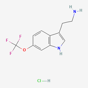 The mechanism of action of 2-(6-(Trifluoromethoxy)-1H-indol-3-yl)ethanamine hydrochloride involves its interaction with specific molecular targets, such as enzymes and receptors. The trifluoromethoxy group and indole ring play crucial roles in these interactions, influencing the compound’s binding affinity and activity. The pathways involved may include modulation of enzyme activity, receptor binding, and signal transduction processes.