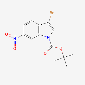 This compound has the molecular formula C₁₃H₁₃BrN₂O₄. Its structure features a bromine atom at the 3-position and a nitro group at the 6-position of the indole ring, along with a tert-butoxycarbonyl (Boc) protecting group on the nitrogen atom. This configuration enhances the compound's stability and reactivity, making it a valuable precursor for synthesizing diverse indole derivatives.