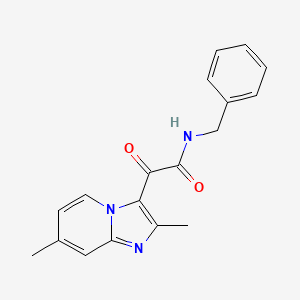 The synthesis of N-Benzyl-2-(2,7-dimethylimidazo[1,2-a]pyridin-3-yl)-2-oxoacetamide typically involves multicomponent condensation reactions. One effective method is the condensation of 2-aminopyridines with arylglyoxals and Meldrum’s acid . This method allows for the efficient formation of the imidazo[1,2-a]pyridine core structure. The reaction conditions often include the use of solvents such as ethanol or acetonitrile and catalysts like p-toluenesulfonic acid to facilitate the reaction.