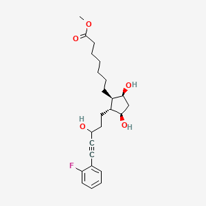 Methyl 7-[(1R,2R,3R,5S)-2-[5-(2-fluorophenyl)-3-hydroxypent-4-ynyl]-3,5-dihydroxycyclopentyl]heptanoate is a complex organic compound that has garnered attention for its potential biological activities. This article provides a comprehensive overview of its biological activity, including pharmacological effects, relevant case studies, and research findings.