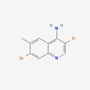 The dibrominated nature of 3,7-Dibromo-6-methylquinolin-4-amine is a key feature that positions it as a valuable building block in synthetic chemistry. The bromine atoms can serve as handles for a variety of cross-coupling reactions, such as Suzuki, Stille, Heck, and Sonogashira reactions. These reactions are fundamental in the construction of complex organic molecules. For instance, the sequential and regioselective substitution of the bromine atoms would allow for the controlled assembly of intricate molecular frameworks. The amine group can also participate in various chemical transformations, further enhancing its versatility.