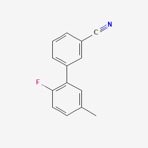 The mechanism of action of 3-(2-Fluoro-5-methylphenyl)benzonitrile depends on its specific application. In biological systems, it may interact with molecular targets such as enzymes or receptors, leading to modulation of biochemical pathways. The presence of the fluoro group can enhance the compound’s binding affinity and selectivity towards specific targets, while the nitrile group can participate in hydrogen bonding and other interactions .