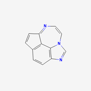 5,6A,9-Triazacyclohepta[jkl]-as-indacene (CAS: 163419-33-8) is a nitrogen-containing polycyclic aromatic compound with the molecular formula C₁₂H₇N₃ and an exact mass of 193.06411 g/mol . Its structure features fused imidazole and benzodiazepine-like rings, as reflected in its IUPAC name and SMILES notation (N1C2C=CC3C=CC4C=3C=2N(C=CN=4)C=1) . Synthetically, it is accessible via gold(I)-catalyzed cycloaddition strategies, which are effective for constructing strained aromatic systems .