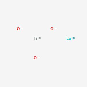 this compound is typically synthesized via solid-state reaction or sol-gel methods. For solid-state synthesis, stoichiometric mixtures of La₂O₃ and TiO₂ precursors are calcined at high temperatures (e.g., 1200–1400°C) to ensure phase purity. Precursor quality is critical: hygroscopic or air-sensitive titanium precursors (e.g., titanium tetraisopropoxide) require inert handling . In sol-gel synthesis, controlled hydrolysis of metal alkoxides yields homogeneous precursors, reducing crystallization temperatures. Crystallinity is influenced by calcination duration, ramp rates, and precursor reactivity. For example, La₂O₃ with high surface area improves diffusion kinetics, while TiO₂ polymorphs (anatase vs. rutile) affect reaction pathways .
