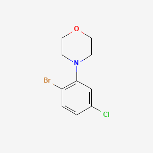 4-(2-Bromo-5-chlorophenyl)morpholine is a halogen-substituted aromatic morpholine derivative. Its structure consists of a morpholine ring (a six-membered heterocycle containing one oxygen and one nitrogen atom) attached to a 2-bromo-5-chlorophenyl group. This compound is of interest in medicinal chemistry and materials science due to the electronic and steric effects imparted by the bromine and chlorine substituents.