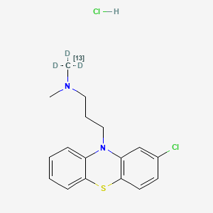 The synthesis of the labeled side-chain itself is a critical component. For example, starting with a suitable precursor, a ¹³C-labeled carbon can be introduced, followed by methylation using a deuterated methylating agent (e.g., d3-methyl iodide) to introduce the three deuterium atoms. The resulting labeled side-chain is then activated (e.g., by conversion to a chloride) and reacted with the chlorophenothiazine core. The final product is then converted to its hydrochloride salt.