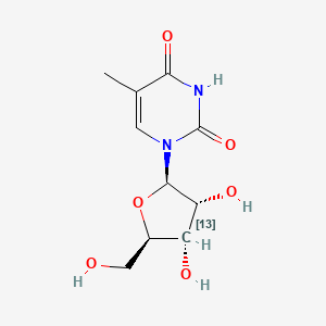 5-Methyluridine (B1664183), also known as ribothymidine, is a modified pyrimidine (B1678525) nucleoside found in the T-loop of transfer RNA (tRNA) in both bacteria and eukaryotes, where it contributes to the stability of the tRNA molecule. wikipedia.orgchemicalbook.com It is a primary degradation product of tRNA. pharmaffiliates.com The isotopically labeled version, this compound, has the carbon atom at the 3' position of the ribose sugar replaced with a ¹³C isotope.