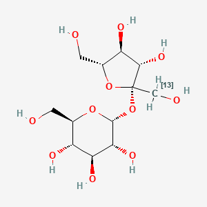 Molecular Targets and Pathways: Sucrose-1-13Cfru exerts its effects by participating in metabolic pathways involving carbohydrates. The labeled carbon-13 allows researchers to track the compound through glycolysis, the citric acid cycle, and other metabolic pathways. This helps in understanding the specific roles and transformations of sucrose in biological systems.