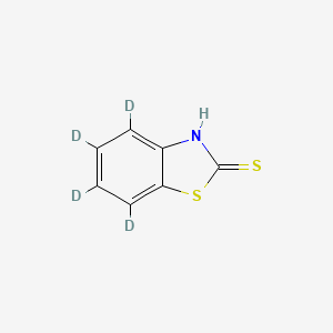 This compound, also known as 2-Mercaptobenzothiazole-d4 or MBT-d4, is a deuterated form of the vulcanization accelerator and bioactive compound, 2-Mercaptobenzothiazole. The deuteration occurs on the benzene (B151609) ring, which provides a distinct mass difference for mass spectrometry-based analytical methods without significantly altering its chemical properties.