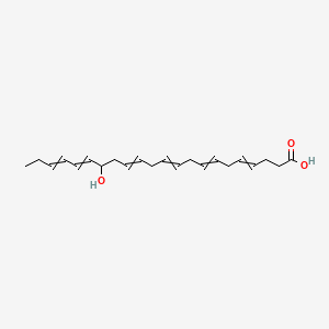 16-Hydroxydocosa-4,7,10,13,17,19-hexaenoic acid (16-HDoHE) is a hydroxy fatty acid derived from docosahexaenoic acid (DHA), a member of the omega-3 fatty acids. This compound is characterized by a hydroxyl group at the 16th carbon position of its long aliphatic chain. The unique structural features of 16-HDoHE contribute to its diverse biological activities, making it a subject of interest in pharmacological and nutritional research.
