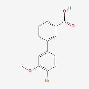 The mechanism of action of 4’-Bromo-3’-methoxybiphenyl-3-carboxylic acid depends on its specific application. In chemical reactions, it acts as a substrate or reagent, participating in various transformations. In biological systems, it may interact with specific molecular targets, such as enzymes or receptors, influencing biochemical pathways and cellular processes .