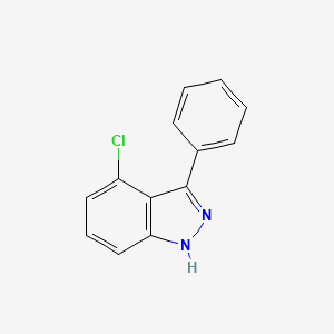 The structure of this compound consists of a bicyclic system where a benzene ring is fused to a pyrazole ring. A chloro group is substituted at the 4-position of the indazole ring, and a phenyl group is attached at the 3-position.