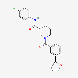 InChI=1S/C23H21ClN2O3/c24-19-8-10-20(11-9-19)25-22(27)18-6-2-12-26(15-18)23(28)17-5-1-4-16(14-17)21-7-3-13-29-21/h1,3-5,7-11,13-14,18H,2,6,12,15H2,(H,25,27) | |