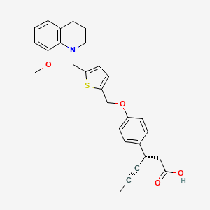 (3S)-3-[4-[[5-[(8-methoxy-3,4-dihydro-2H-quinolin-1-yl)methyl]thiophen-2-yl]methoxy]phenyl]hex-4-ynoic acid | |