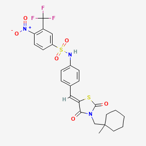 InChI=1S/C25H24F3N3O6S2/c1-24(11-3-2-4-12-24)15-30-22(32)21(38-23(30)33)13-16-5-7-17(8-6-16)29-39(36,37)18-9-10-20(31(34)35)19(14-18)25(26,27)28/h5-10,13-14,29H,2-4,11-12,15H2,1H3/b21-13- |