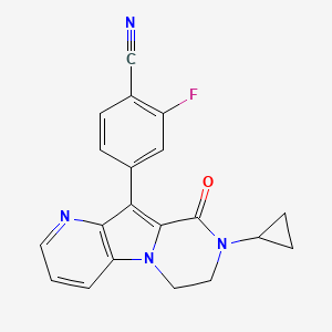 InChI=1S/C20H15FN4O/c21-15-10-12(3-4-13(15)11-22)17-18-16(2-1-7-23-18)25-9-8-24(14-5-6-14)20(26)19(17)25/h1-4,7,10,14H,5-6,8-9H2 | |