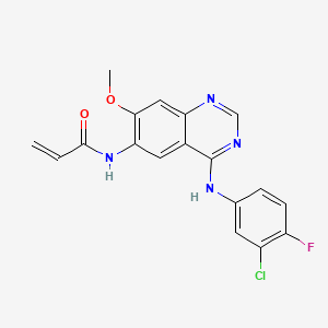 This compound functions as a targeted covalent inhibitor of EGFR, a receptor tyrosine kinase that plays a pivotal role in cell proliferation, differentiation, and survival.[2] The compound's mechanism relies on a two-step process: an initial, high-affinity reversible binding to the EGFR kinase domain, followed by an irreversible covalent bond formation with a specific cysteine residue (Cys797) within the ATP-binding pocket.[3][4] This covalent modification permanently inactivates the kinase, thereby blocking downstream signaling pathways that are often dysregulated in cancer.[5]