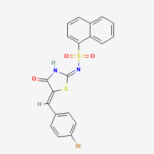 InChI=1S/C20H13BrN2O3S2/c21-15-10-8-13(9-11-15)12-17-19(24)22-20(27-17)23-28(25,26)18-7-3-5-14-4-1-2-6-16(14)18/h1-12H,(H,22,23,24)/b17-12- | |