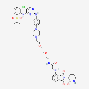 CC(C)S(=O)(=O)C1=CC=CC=C1NC2=NC(=NC=C2Cl)NC3=CC=C(C=C3)N4CCN(CC4)CCOCCOCCNC(=O)CNC5=CC=CC6=C5C(=O)N(C6=O)C7CCCNC7=O | |
