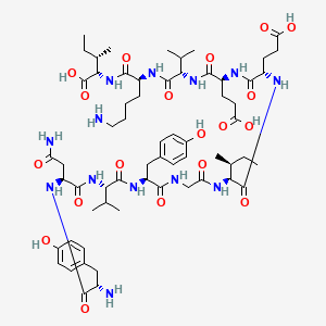 CC[C@H](C)[C@@H](C(=O)N[C@@H](CCC(=O)O)C(=O)N[C@@H](CCC(=O)O)C(=O)N[C@@H](C(C)C)C(=O)N[C@@H](CCCCN)C(=O)N[C@@H]([C@@H](C)CC)C(=O)O)NC(=O)CNC(=O)[C@H](CC1=CC=C(C=C1)O)NC(=O)[C@H](C(C)C)NC(=O)[C@H](CC(=O)N)NC(=O)[C@H](CC2=CC=C(C=C2)O)N | |