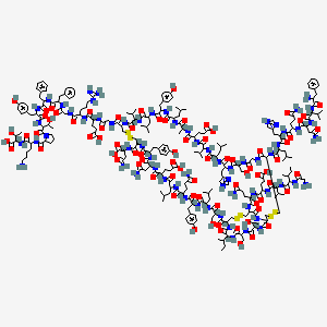 (4S)-4-[[2-[[(1R,6R,12S,15S,18S,21S,24S,27S,30S,33S,36S,39S,42R,47R,50S,53S,56S,59S,62S,65S,68S,71S,74R,77S,80S,83S,88R)-88-[[(2S)-5-amino-2-[[(2S)-2-[[(2S)-2-[[(2S,3S)-2-[(2-aminoacetyl)amino]-3-methylpentanoyl]amino]-3-methylbutanoyl]amino]-4-carboxybutanoyl]amino]-5-oxopentanoyl]amino]-6-[[(2S)-2-[[(2S)-2-[[(2S)-5-amino-2-[[(2S)-4-amino-2-[[(2S)-2-[[(2S)-2-amino-3-phenylpropanoyl]amino]-3-methylbutanoyl]amino]-4-oxobutanoyl]amino]-5-oxopentanoyl]amino]-3-(1H-imidazol-4-yl)propanoyl]amino]-4-methylpentanoyl]amino]-47-[[(1S)-3-amino-1-carboxy-3-oxopropyl]carbamoyl]-53-(2-amino-2-oxoethyl)-62-(3-amino-3-oxopropyl)-77-[(2S)-butan-2-yl]-24,56-bis(2-carboxyethyl)-83-[(1R)-1-hydroxyethyl]-12,71,80-tris(hydroxymethyl)-33,50,65-tris[(4-hydroxyphenyl)methyl]-15-(1H-imidazol-4-ylmethyl)-27-methyl-18,30,36,59,68-pentakis(2-methylpropyl)-7,10,13,16,19,22,25,28,31,34,37,40,49,52,55,58,61,64,67,70,73,76,79,82,85,87-hexacosaoxo-21,39-di(propan-2-yl)-3,4,44,45,90,91-hexathia-8,11,14,17,20,23,26,29,32,35,38,41,48,51,54,57,60,63,66,69,72,75,78,81,84,86-hexacosazabicyclo[72.11.7]dononacontane-42-carbonyl]amino]acetyl]amino]-5-[[(2S)-1-[[2-[[(2S)-1-[[(2S)-1-[[(2S)-1-[[(2S,3R)-1-[(2S)-2-[[(2S)-6-amino-1-[[(1S,2R)-1-carboxy-2-hydroxypropyl]amino]-1-oxohexan-2-yl]carbamoyl]pyrrolidin-1-yl]-3-hydroxy-1-oxobutan-2-yl]amino]-3-(4-hydroxyphenyl)-1-oxopropan-2-yl]amino]-1-oxo-3-phenylpropan-2-yl]amino]-1-oxo-3-phenylpropan-2-yl]amino]-2-oxoethyl]amino]-5-carbamimidamido-1-oxopentan-2-yl]amino]-5-oxopentanoic acid |