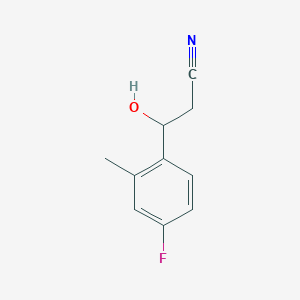 The mechanism of action of 3-(4-Fluoro-2-methylphenyl)-3-hydroxypropanenitrile involves its interaction with specific molecular targets and pathways. The compound’s fluoro-substituted phenyl ring and hydroxyl group enable it to bind to enzymes or receptors, potentially inhibiting or modulating their activity. The nitrile group may also play a role in its reactivity and interaction with biological molecules. Detailed studies on its molecular targets and pathways are essential to fully understand its mechanism of action .