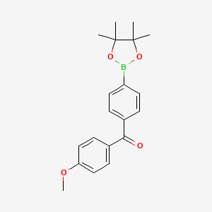 2-{4-[(4-Methoxyphenyl)carbonyl]phenyl}-4,4,5,5-tetramethyl-1,3,2-dioxaborolane is an organoboron compound widely used in organic synthesis, particularly in Suzuki-Miyaura cross-coupling reactions. This compound features a boronate ester group, which is crucial for its reactivity and utility in forming carbon-carbon bonds. The presence of the methoxyphenyl and carbonyl groups further enhances its versatility in various chemical transformations.