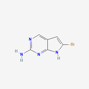 The 6-bromo-7H-pyrrolo[2,3-d]pyrimidin-2-amine core is a critical building block for the synthesis of a variety of therapeutic agents, particularly kinase inhibitors. The bromine atom at the 6-position serves as a versatile handle for introducing a wide range of substituents via cross-coupling reactions, such as the Suzuki and Buchwald-Hartwig reactions. This allows for the systematic exploration of the chemical space around the scaffold to identify novel compounds with desired biological activities.