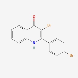 The synthesis of 3-BROMO-2-(4-BROMOPHENYL)QUINOLIN-4-OL typically involves the bromination of quinolin-4-ol. One common method includes the reaction of quinolin-4-ol with phosphorus tribromide in dry dimethylformamide (DMF) under a nitrogen atmosphere . The reaction conditions are carefully controlled to ensure the selective bromination at the desired positions on the quinoline ring.