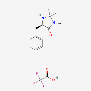 The mechanism of action of ®-5-Benzyl-2,2,3-trimethylimidazolidin-4-one 2,2,2-trifluoroacetate involves its interaction with specific molecular targets, such as enzymes or receptors. The trifluoroacetate group plays a crucial role in modulating the compound’s reactivity and binding affinity. Detailed studies using techniques like molecular docking and spectroscopy have provided insights into the pathways involved in its biological activity .