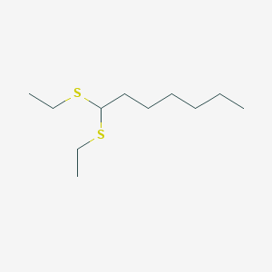 1,1-Bis(ethylsulfanyl)heptane is a sulfur-containing organic compound with the molecular formula C₁₁H₂₄S₂. Its structure consists of a heptane backbone with two ethylsulfanyl (–S–CH₂CH₃) groups attached to the first carbon atom.