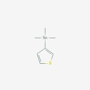This compound is a specific organostannane reagent where a trimethylstannyl group (–Sn(CH₃)₃) is attached to the C3 position (the beta-position) of a thiophene ring. Its significance lies in its function as a regioselective building block. While many syntheses focus on substitution at the more reactive C2 (or alpha) position of thiophene, this reagent provides a direct route to 3-substituted thienyl structures. The position of substitution on the thiophene ring profoundly influences the electronic properties and three-dimensional shape of the resulting molecules. For instance, incorporating thiophene via the C3 position can introduce a "kink" in a polymer backbone, altering its morphology and electronic characteristics compared to a more linear analogue derived from a C2-substituted precursor. Therefore, this compound is a valuable tool for fine-tuning the properties of functional materials and complex organic molecules.