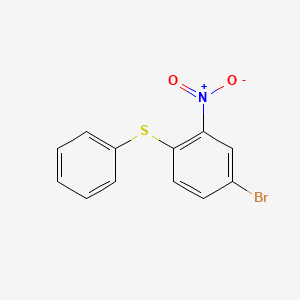 (4-Bromo-2-nitrophenyl)(phenyl)sulfane is a sulfur-containing aromatic compound characterized by a phenyl group bonded via a sulfane (S–C) linkage to a substituted phenyl ring bearing bromo (Br) and nitro (NO₂) groups at the 4- and 2-positions, respectively. This compound belongs to the aryl sulfane family, which is notable for applications in organic synthesis, materials science, and pharmaceuticals due to their tunable electronic and steric properties .
