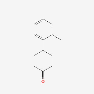 4-(2-Methylphenyl)cyclohexanone is a substituted cyclohexanone derivative featuring a 2-methylphenyl group at the 4-position of the cyclohexanone ring. This structural motif combines the ketone functionality of cyclohexanone with the steric and electronic effects of an ortho-methyl-substituted aryl group. Substituted cyclohexanones are pivotal in organic synthesis, serving as intermediates in pharmaceuticals, agrochemicals, and materials science.