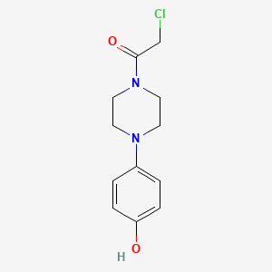 2-Chloro-1-(4-(4-hydroxyphenyl)piperazin-1-yl)ethanone is a chemical compound that belongs to the class of piperazine derivatives. This compound is characterized by the presence of a chloroacetyl group attached to the piperazine ring and a hydroxyphenyl group. It is used in various scientific research applications due to its unique chemical properties.
